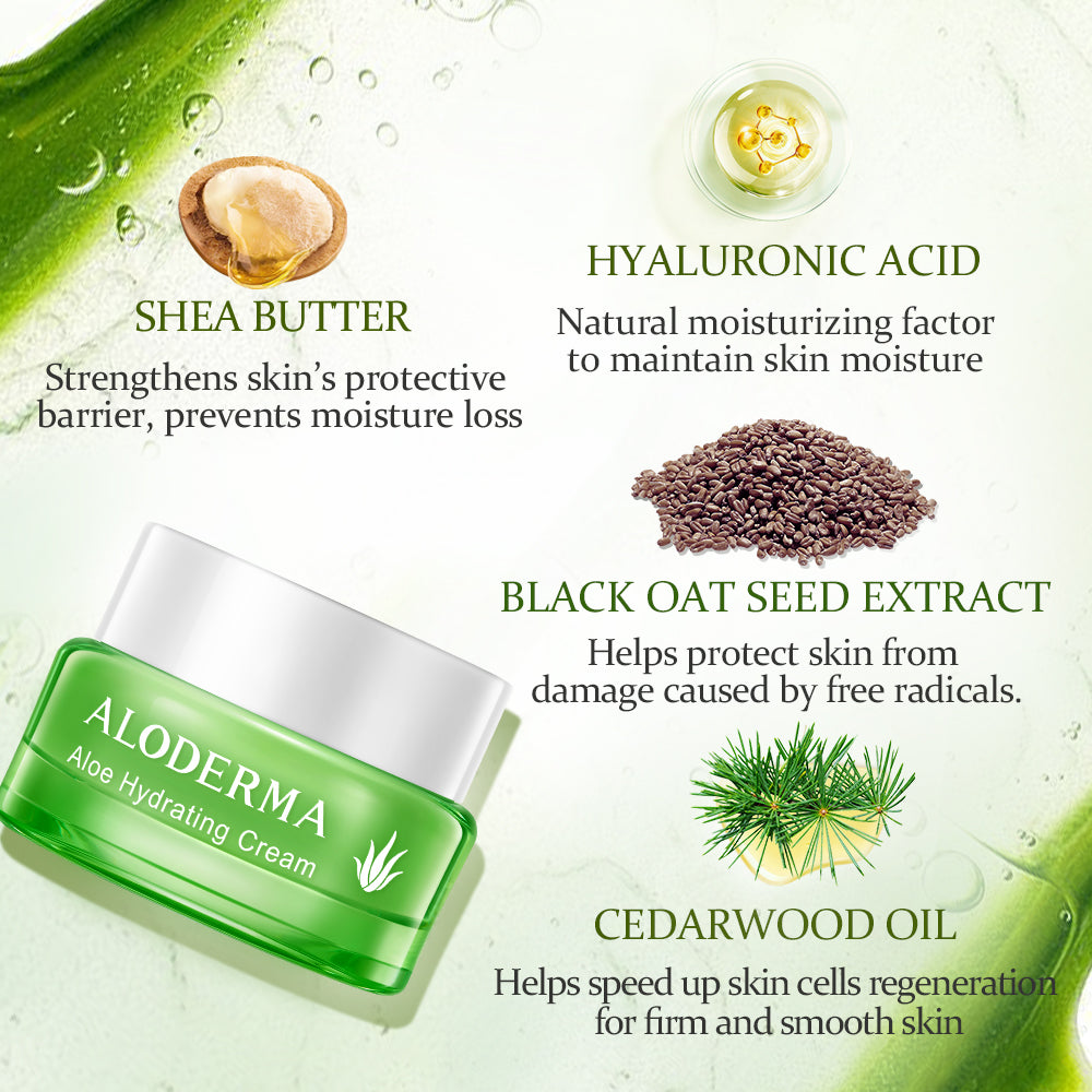 Quench your skin's thirst and experience lasting hydration with ALODERMA Aloe Hydrating Cream. This lightweight, yet deeply moisturizing cream is a perfect match for all skin types, especially those craving a boost of moisture. Our hero ingredient, fresh, organic Aloe Vera, harvested within 12 hours of processing, delivers a powerful dose of nature's hydration, leaving your skin feeling soft, supple, and glowing.