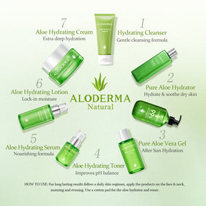 Utilizando una tecnología patentada de procesamiento de Aloe Vera, todos los productos para el cuidado de la piel de ALODERMA capturan los nutrientes activos del Aloe Vera fresco: hidratan, iluminan, calman, suavizan, tensan y rejuvenecen la apariencia de la piel. Con más de 230 nutrientes, el jugo que se encuentra dentro del Aloe Vera captura el poder de la naturaleza para reparar y nutrir la piel. ALODERMA te ayuda a lograr una belleza asombrosa a través del poder natural del Aloe Vera.