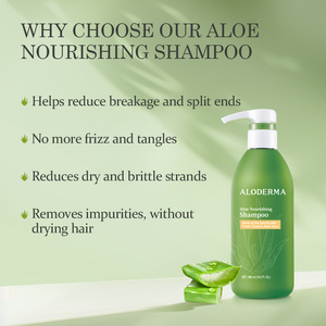 1. Aloe Nourishing Shampoo: Experience the transformative power of nature with ALODERMA's Aloe Nourishing Shampoo. This gentle yet effective formula deeply cleanses and nourishes your hair, leaving it feeling incredibly soft, hydrated, and effortlessly manageable. Formulated with freshly harvested organic aloe vera, this shampoo provides a luxurious cleansing experience that gently removes impurities without stripping your hair of its natural oils. Enriched with Crambe Seed Oil, a rich source of essential fatty acids, this shampoo helps to strengthen hair strands, reducing breakage and split ends.
